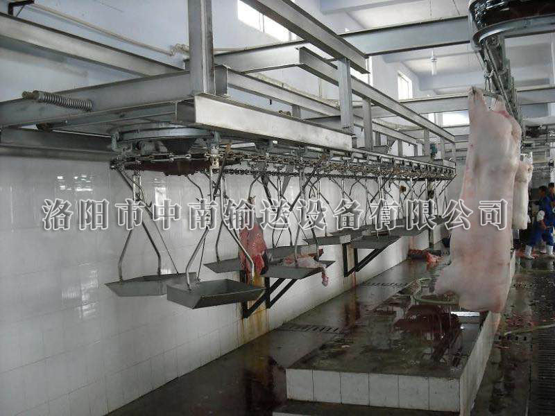 本檢驗線又稱衛(wèi)生檢驗線。解剖的副產(chǎn)品裝在相對應(yīng)的檢驗盤內(nèi),通過胴體加工輸送線與該同步檢驗線的同步運行,以達到同步衛(wèi)生檢驗的目的。